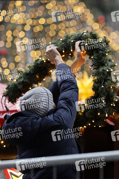 Der Kölner Weihnachtsmarkt auf dem Roncalliplatz befindet sich im Aufbau. Die meisten Weihnachtsmärkte in NRW werden dieses Jahr trotz ausgerufener Corona-Pandemie stattfinden. Flächendeckend wird dabei die 2G-Regel gelten. Köln, 16.11.2021