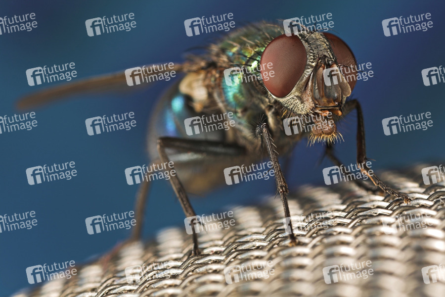 Fliege auf Stahlnetz