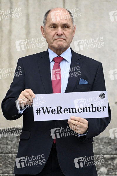Wolfgang Sobotka bei Pressestatements von Wolfgang Sobotka, Mickey Levy und Bärbel Bas am Schriftzug #WeRemember zur Erinnerung an die Millionen im Nationalsozialismus ermordeten Juden vor dem Reichstagsgebäude. Berlin, 25.01.2022