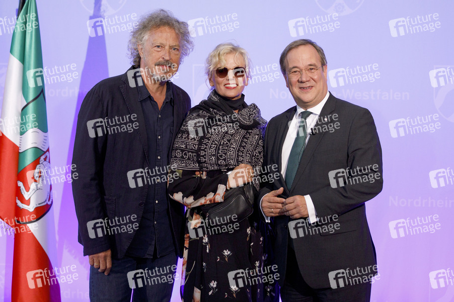 Wolfgang Niedecken mit Ehefrau Tina und Armin Laschet bei der Verleihung des Staatspreises des Landes Nordrhein-Westfalen 2019 an Klaus Töpfer im WCCB. Bonn, 16.09.2019
