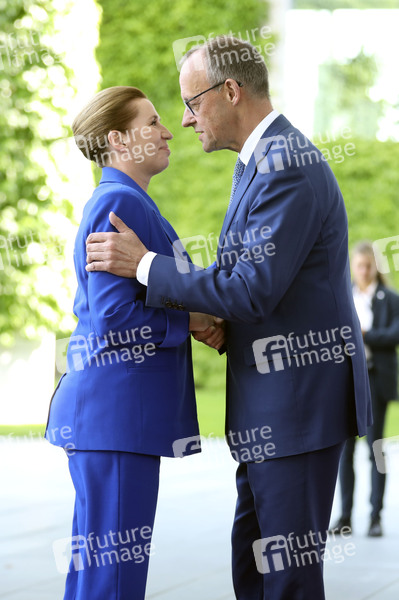 Mette Frederiksen und Friedrich Merz beim Empfang der dänischen Ministerpräsidentin mit militärischen Ehren zu einem gemeinsamen Gespräch mit anschließendem Pressestatement im Bundeskanzleramt. Berlin, 11.06.2025
