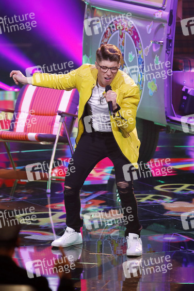 Davin Herbrüggen in der zweiten Live-Mottoshow der 16. Staffel der RTL-Castingshow 'Deutschland sucht den Superstar / DSDS 2019' im MMC Coloneum. Köln, 13.04.2019