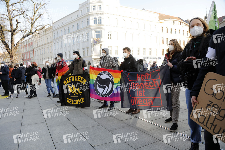 Überparteiliche Kundgebung der Grünen Jugend, Linksjugend solid und JUSO unter dem Motto 'Görlitz zeigt Haltung!' gegen Verschwörungstheorien und demokratiefeindliches Gedankengut auf dem Marienplatz. Görlitz, 27.02.2022