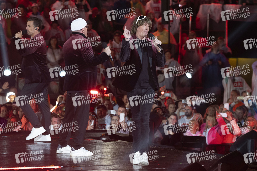 DJ Ötzi, Micky Krause und Florian Silbereisen in der TV-Show 'Schlagerbooom Open Air - Die Stadionshow in Österreich' live aus dem Stadion Kitzbühel. Kitzbühel, 08.06.2024