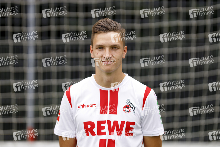Noah Katterbach beim Fototermin im Rahmen des Media Day des 1. FC Köln mit den neuen Trikots in der Saison 2020/2021 am Geißbockheim. Köln, 14.08.2020