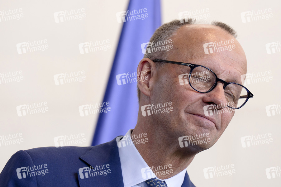 Friedrich Merz beim Empfang des Ministerpräsidenten von Griechenland mit militärischen Ehren und zu einem gemeinsamen Gespräch mit anschließendem Pressestatement im Bundeskanzleramt. Berlin, 13.05.2025
