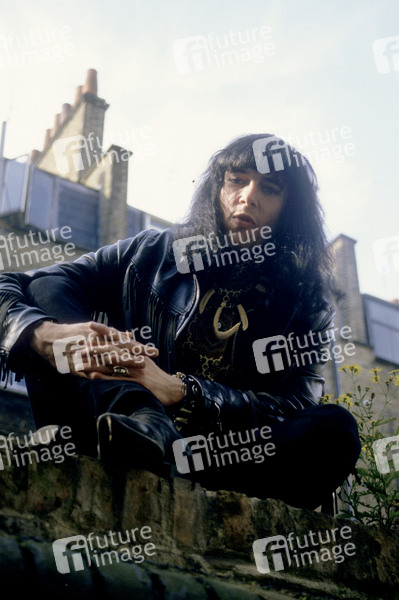 Rudi Protrudi von The Fuzztones bei einem Photoshooting. London, 27.05.1988