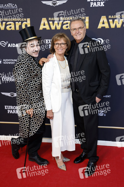 Albert de Paris, Marianne Mack und Roland Mack bei der Verleihung des 25. Radio Regenbogen Award 2025 in der Europa-Park Arena. Rust, 04.04.2025