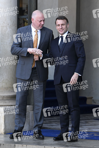 Rosen Zhelyazkov / Rossen Scheljaskow und Emmanuel Macron beim Treffen der Koaltion der Willigen zu Beratung über die militärische Unterstützung für die Ukraine im Élysée-Palast. Paris, 06.01.2026