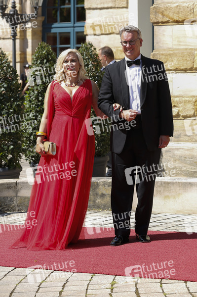 Melanie Huml mit Ehemann Markus Huml bei der Eröffnung der Richard-Wagner-Festspiele 2022 mit der Neuinszenierung von Richard Wagners 'Tristan und Isolde' im Bayreuther Festspielhaus. Bayreuth, 25.07.2022
