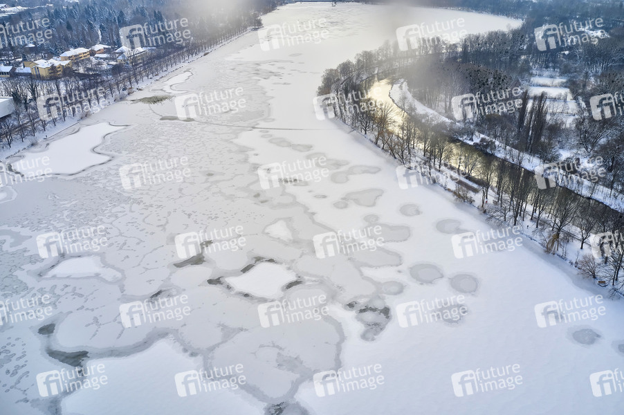 Gewässer, Eis, gefroren, zugefroren, verschneit, Schnee, Chaos, Glätte, Eis, kalt, Wintereinbruch, Eisregen, Minustemperaturen, Winter, Winterwetter, Grenzwetterlage, Schneefälle, Schneefall, Frost, Wetterlage, Luftaufnahme