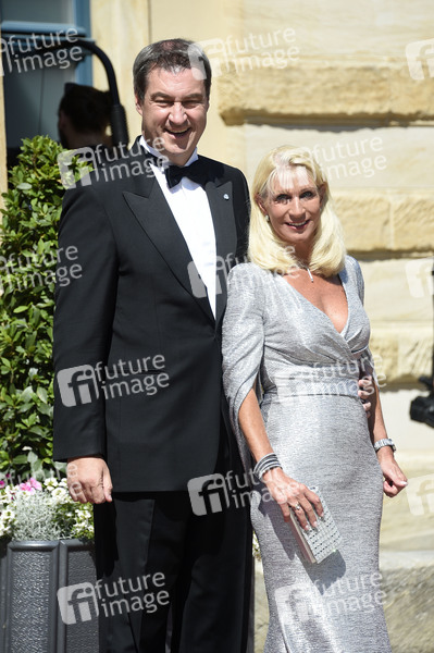Markus Söder mit Ehefrau Karin Baumüller bei der Eröffnung der Richard-Wagner-Festspiele 2019 mit der Premiere 'Tannhäuser' im Bayreuther Festspielhaus. Bayreuth, 25.07.2019
