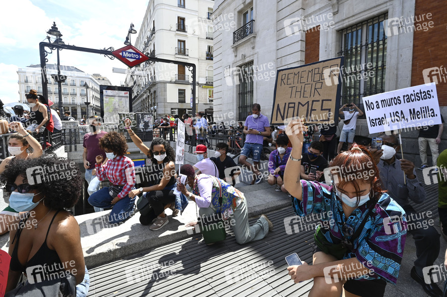 'Black Lives Matter' Demonstration gegen Polizeigewalt und Rassismus nach dem Tod des Afroamerikaners George Floyd auf dem Puerta del Sol. Madrid, 07.06.2020