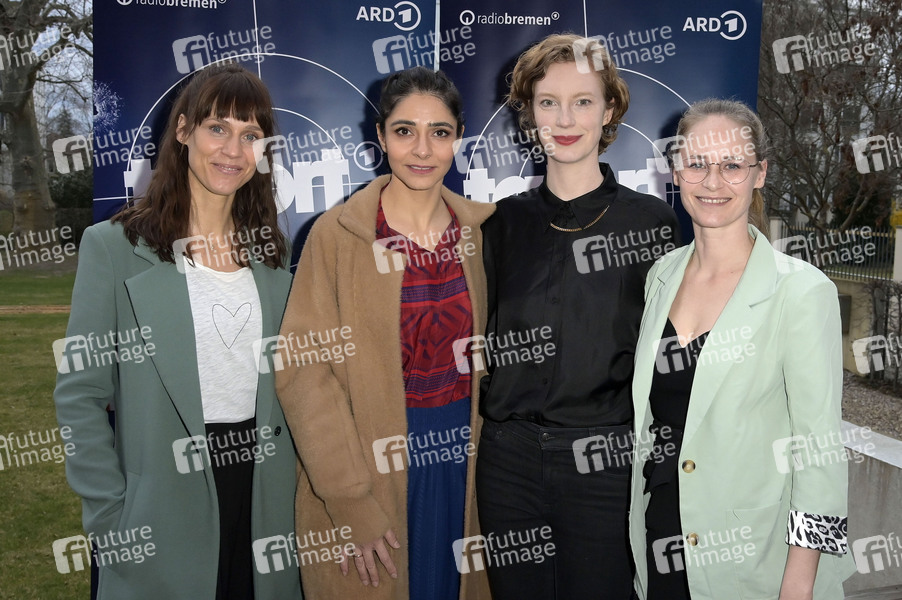 Sophie Lutz, Pegah Ferydoni, Luise Wolfram und Inez Björg David bei der Preview des ARD-Krimis 'Tatort - Angst im Dunkeln' in der Vertretung des Landes Bremen beim Bund. Berlin, 11.03.2024
