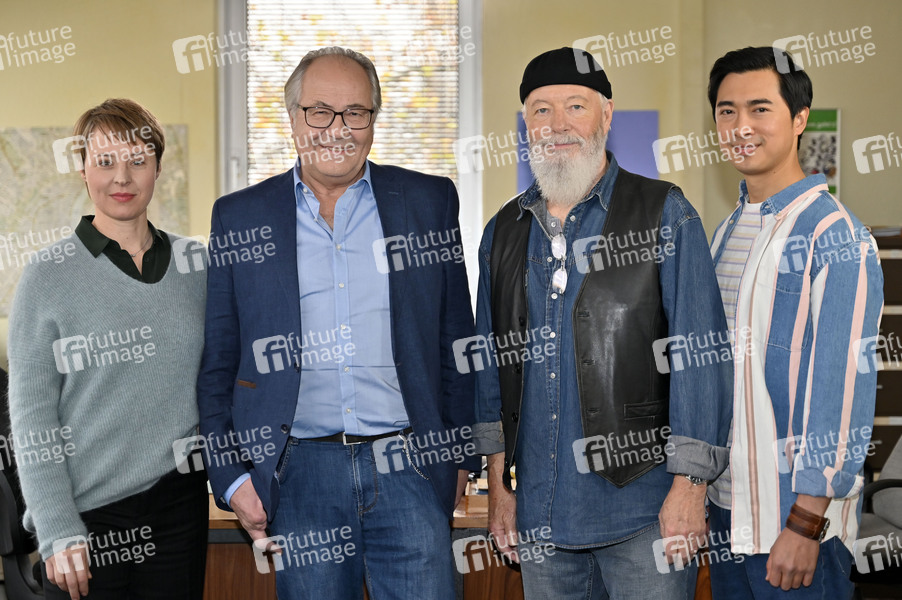 Katja Danowski, Hartmut Volle, Bill Mockridge und Aaron Le beim Fototermin am Set der ARD TV-Serie 'Rentnercops' in der Stolberger Straße. Köln, 01.12.2022