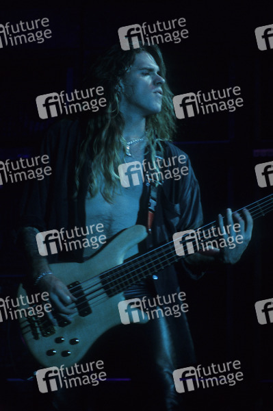 Pat Badger von Extreme live bei einem Konzert der 'Stop the World'-Tour in der Music Hall. Hannover, 29.11.1992