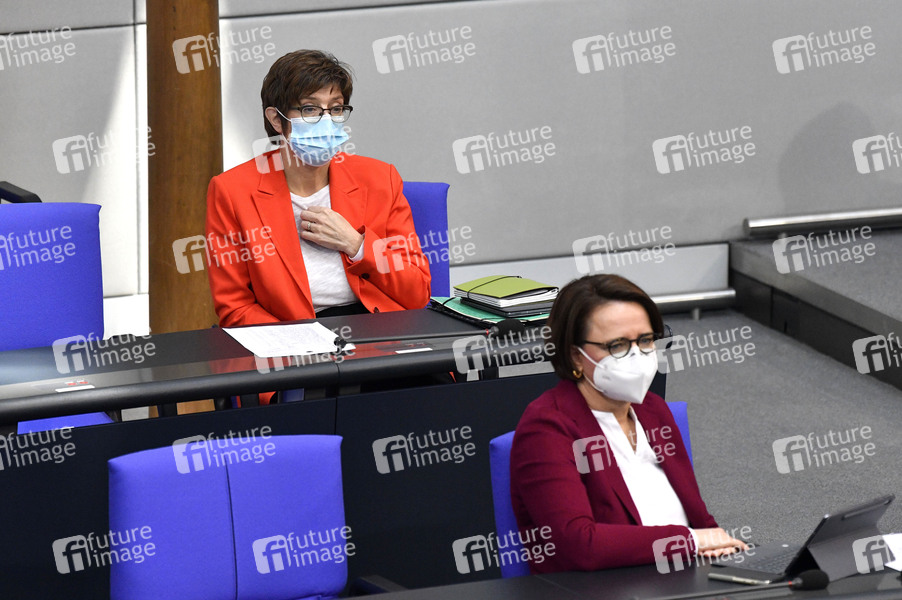 Annegret Kramp-Karrenbauer und Annette Widmann-Mauz in der 216. Sitzung des Deutschen Bundestages im Reichstagsgebäude. Berlin, 05.03.2021