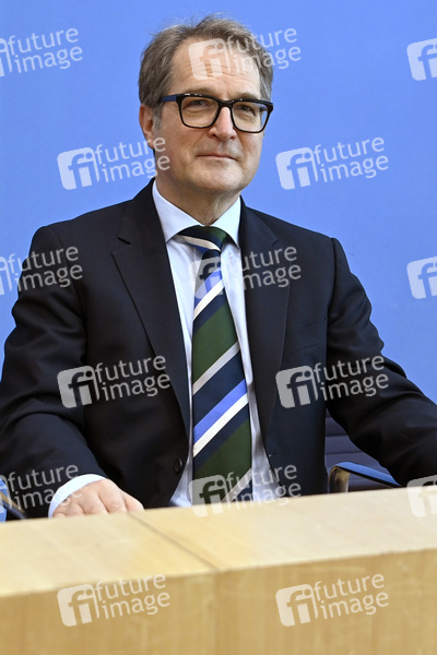 Prof. Volker Wieland bei einer Pressekonferenz der Wirtschaftsweisen zur Vorstellung der aktualisierten Konjunkturprognose - Sachverständigenrat zur Begutachtung der gesamtwirtschaftlichen Entwicklung im Haus der Bundespressekonferenz. Berlin, 30.03.2022