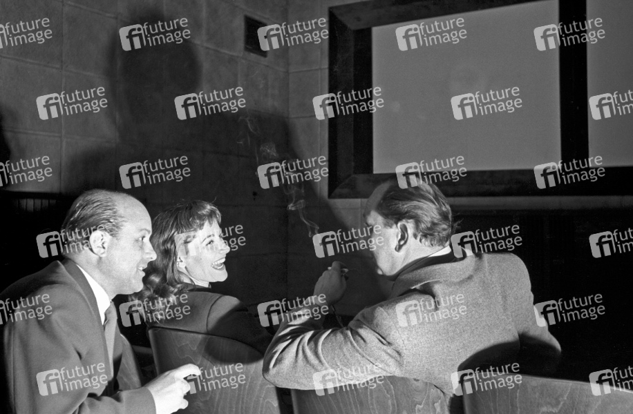 Gislea Uhlen mit Kollegen im Vorführraum
