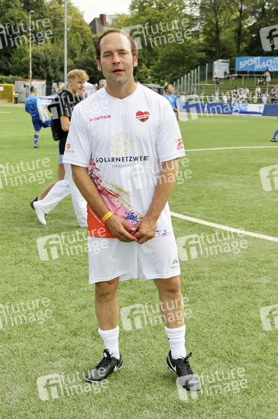 Axel Bosse beim Benefiz-Fußballspiel 'Kicken mit Herz' 2024 zu Gunsten des Herzzentrums des UKE im Stadion des SC Victoria. Hamburg, 08.09.2024