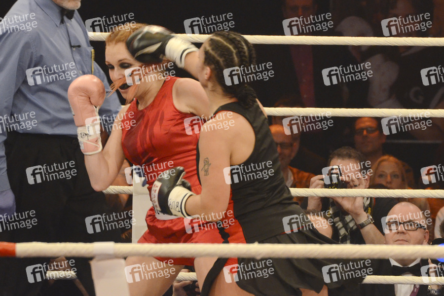 Georgina Fleur vs. Marlene 'Jazzy' Tackenberg bei der Fernsehshow 'Das große Sat.1 Promiboxen 2013' im Castello. Düsseldorf, 08.03.2013
