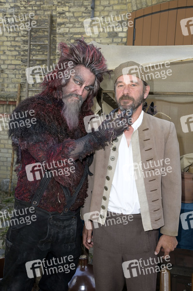 Detlev Buck und Peter Schneider beim Foto- und Pressetermin am Set von 'Das Märchen von der silbernen Brücke' aus der ARD-Reihe 'Sechs auf einen Streich' auf dem Gutshof Britz. Berlin, 23.07.2024