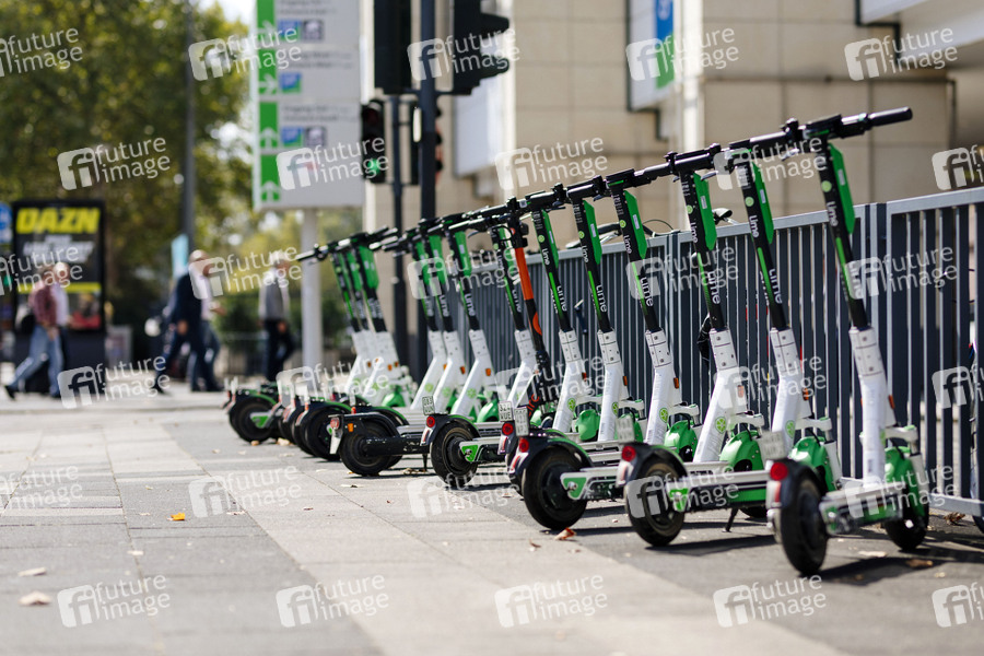 E-Scooter der Anbieter Circ und Lime stehen an der Messe. Köln, 04.09.2019