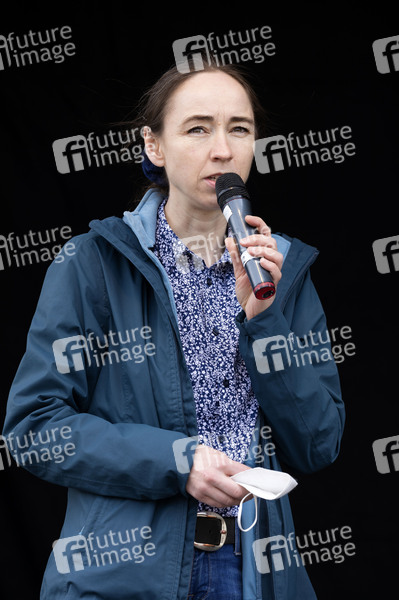 Kris Kaufmann bei der Maikundgebung der Partei Die Linke auf dem Alaunplatz. Dresden, 01.05.2021