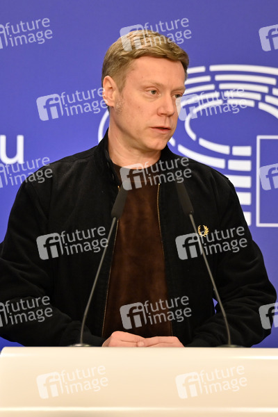Martin Schirdewan bei einer Pressekonferenz der Fraktion Die Linke zum Krieg in der Ukraine im Europäischen Parlament. Brüssel, 01.03.2022