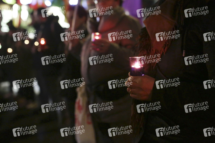 Ein Demonstrationszug zieht in Gedenken an die Opfer vom rechtsextremen Anschlag in Hanau vom Hermannplatz zum Rathaus Neukölln. Berlin, 20.02.2020