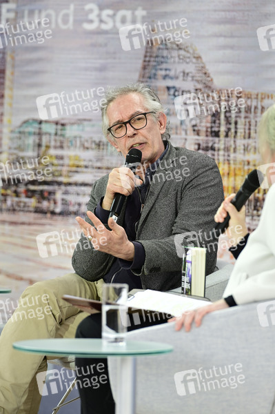 Ulrich Peltzer im Gespräch zu seinem Buch 'Der Ernst des Lebens' auf der ARD, ZDF und 3sat Literaturbühne auf der Leipziger Buchmesse 2024 auf dem Messegelände. Leipzig, 21.03.2024