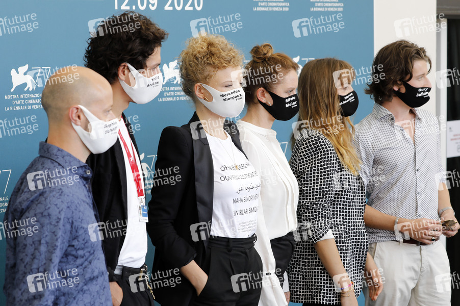 Gast, Noah Saavedra, Luisa-Celine Gaffron, Julia von Heinz, Mala Emde und Tonio Schneider beim Photocall zum Kinofilm 'Und morgen die ganze Welt / And Tomorrow the Entire World' auf der Biennale di Venezia 2020 / 77. Internationale Filmfestspiele von Venedig im Palazzo del Casino. Venedig, 10.09.2020