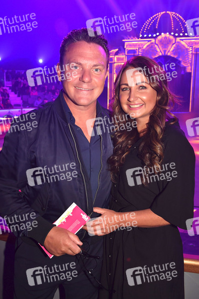 Stefan Mross mit Partnerin Eva Luginger bei der Premiere des Circus Krone Tourneeprogramms 'Farbenspiel - Gold Edition' im Circus Krone Zelt auf der Theresienwiese. München, 10.04.2025