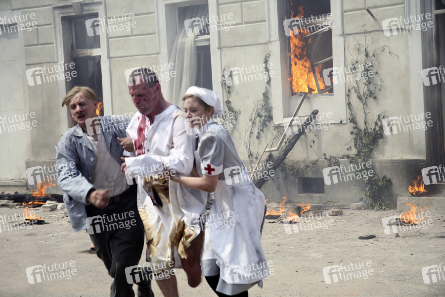 Bei den Dreharbeiten von 'Obsluhoval jsem anglického krále / Ich habe den englischen König bedient / I Served the King of England' in Prag
