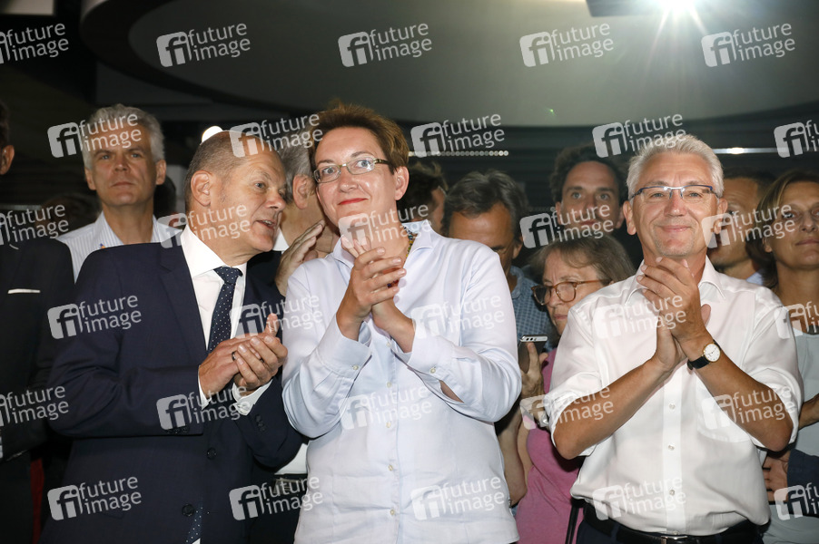 Olaf Scholz und Klara Geywitz bei der Wahlparty der SPD nach der Landtagswahl in Brandenburg im Bildungsforum Potsdam. Potsdam, 01.09.2019