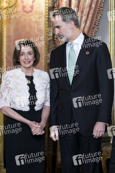 Nancy Pelosi und König Felipe von Spanien bei einem Empfang anlässlich der UN-Klimakonferenz 2019 im Palacio Real. Madrid, 02.12.2019