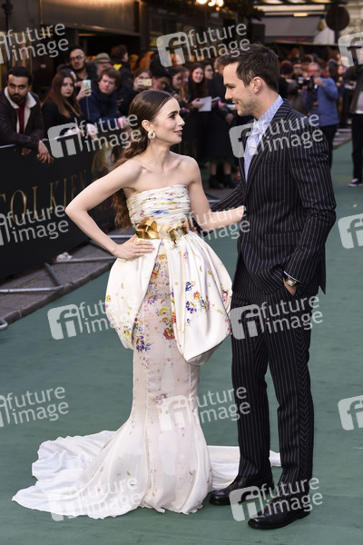 Lilly Collins und Nicholas Hoult bei der Premiere des Kinofilms 'Tolkien' im Curzon Mayfair. London, 29.04.2019