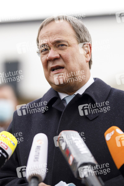 Armin Laschet bei einem Pressestatement vor dem Universitätsklinikum Düsseldorf. In Rekordzeit hat das UKD eine räumlich vollständig getrennte Neubau-Einheit zur Versorgung von COVID-19-Patienten erbaut. Das Gebäude bietet 18 Intermediate-Care-Plätze und 25 Intensivplätze. Damit verfügt das Universitätsklinikum über eine der modernsten Intensiveinheiten Europas. Düsseldorf, 30.12.2020