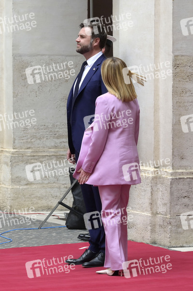 JD Vance und Giorgia Meloni beim Empfang des US-Vizepräsidenten im Palazzo Chigi. Rom, 18.04.2025