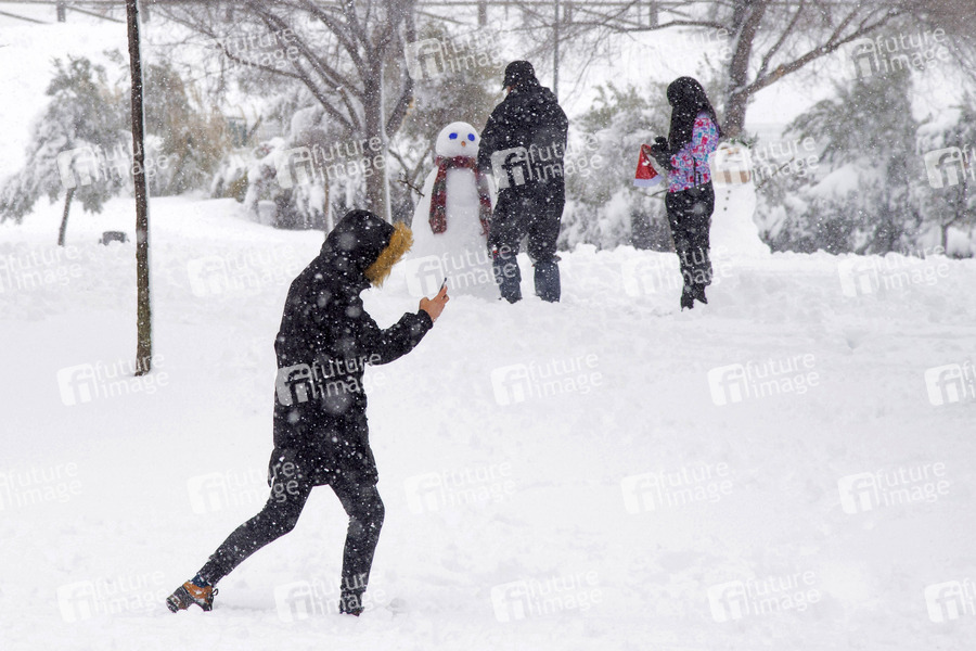 Das Sturmtief Filomena sorgt in der Region Madrid und anderen Teilen Spaniens mit starken Schneefällen für Chaos. Die Hauptstadt Madrid wurde durch historisch heftigen Schneefall lahmgelegt. Seit 50 Jahren hat es nicht so geschneit. Der Verkehr ist in weiten Teilen des Landes zusammengebrochen. Torrejón de Ardoz, 09.01.2021