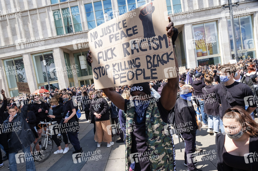 'Silent Demo' gegen Polizeigewalt und Rassismus nach dem Tod des Afroamerikaners George Floyd am Alexanderplatz. Berlin, 06.06.2020