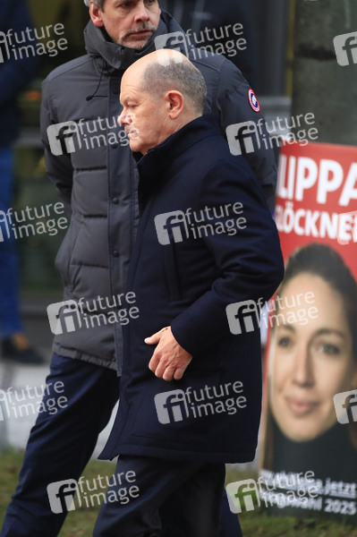 Olaf Scholz beim Pressestatement am Ort des mutmaßlichen Anschlags vom 13. Februar. München, 15.02.2025