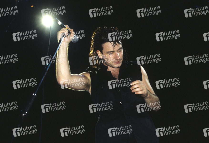 Bono von U2 live bei einem Konzert der 'The Unforgettable Fire'-Tour in der Wembley Arena. London, 14.11.1984