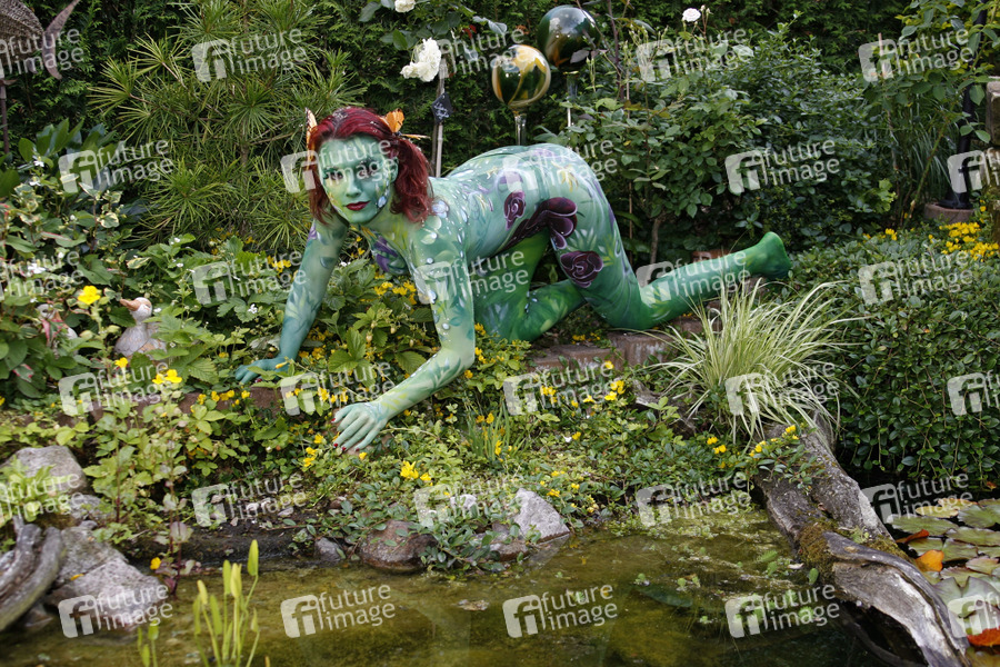 Bodypainting und Fotoshooting mit Model Nadine auf dem 'Tag des offenen Gartens' in Stadthagen-Niedernwöhren. Künstler: Jörg Düsterwald