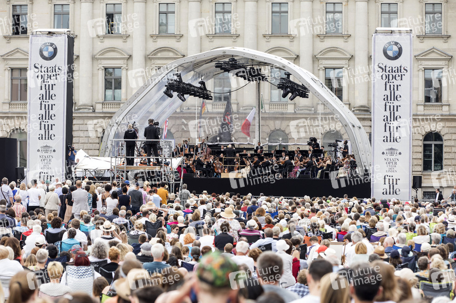 Konzertbesucher 'Staatsoper für alle 2019' Event mit den Sinfoniekonzerten 'Felix Mendelssohn Bartholdys Violinkonzert e-Moll' und 'Johannes Brahms zweiter Symphonie' mit der Staatskapelle Berlin live auf dem Bebelplatz. Berlin, 16.06.2019