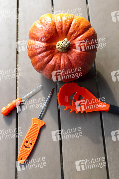 Kürbis schnitzen, Kürbisse, Cucurbita, Halloween, Herbst, Kürbisfruchtfleisch, Kürbiswände, Kürbis Gesicht, Kürbis-Schnitzset, Deko, Symbolbild, Themenbild