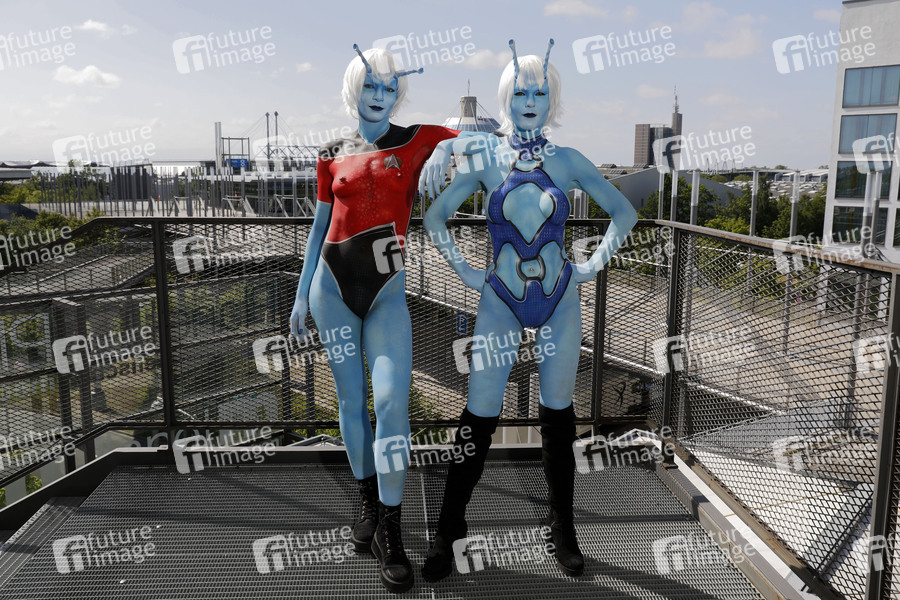 Cosplay, Cosplayer, Bodypainting, Body-Painting, Make-up, Latexappliaktionen, Maskenbildnerei, Körperkunst, Körperfarben, Projekt Farbkörper, Farbe, Bemalung, Kunst, Malerei, Star Trek, Trekkies, Trekker, Alien, Aliens, Andorianerinnen, Science Fiction, Andorian, humanoid extraterrestrial, body painting, body art, project color body, colors