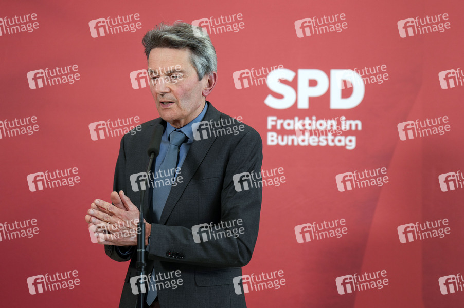 Politik, Statement, Pressekonferenz, PK, Reichstag, Deutscher Bundestag, Demokratie, Parlament, Parlamentsgebäude, Volksvertreter, MdB, Mitglied des Bundestages, Abgeordneter, Politiker, SPD, Fraktionsvorsitzender der SPD-Bundestagsfraktion
