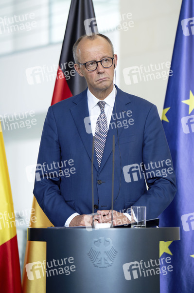 Friedrich Merz beim Empfang des Präsidenten von Rumänien zu einem gemeinsamen Gespräch mit anschließendem Pressestatement im Bundeskanzleramt. Berlin, 18.07.2025