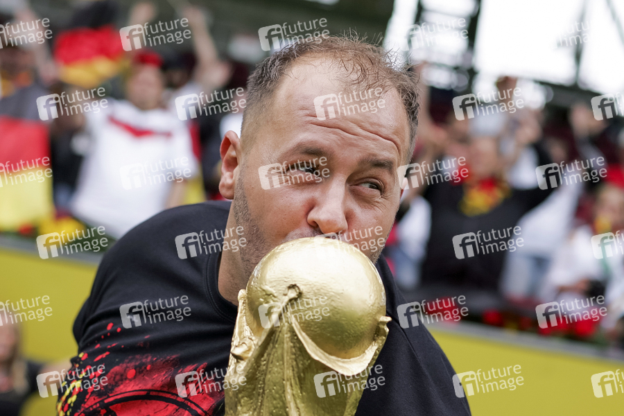 Willi Herren ist tot, er wurde am 20.04.2021 leblos in seiner Wohnung in Köln aufgefunden. Hier ein Foto bei den Dreharbeiten zu seinem WM-Song 'Da geht er hoch, da geht er rein' im Victoria Stadion. Köln, 24.05.2014